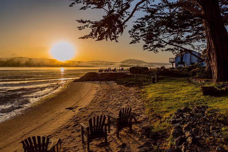 Just over an hour from San Francisco, in the peaceful village of Inverness, Dancing Coyote Beach offers three private cottages along a stretch of beach on Tomales Bay, beside the Point Reyes National Seashore. Built in 1971 and lovingly restored in 2020, our cottages reflect the best of classic Northern California design – clean lines, groovy angles, and multiple windows that invite the light and landscape inside.
